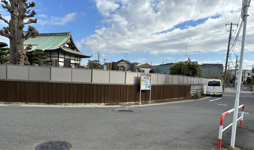 2024年6月29日(日)に着手した本行徳の権現道に面した圓頓寺さんのグロック塀を板塀にするプロジェクト。
